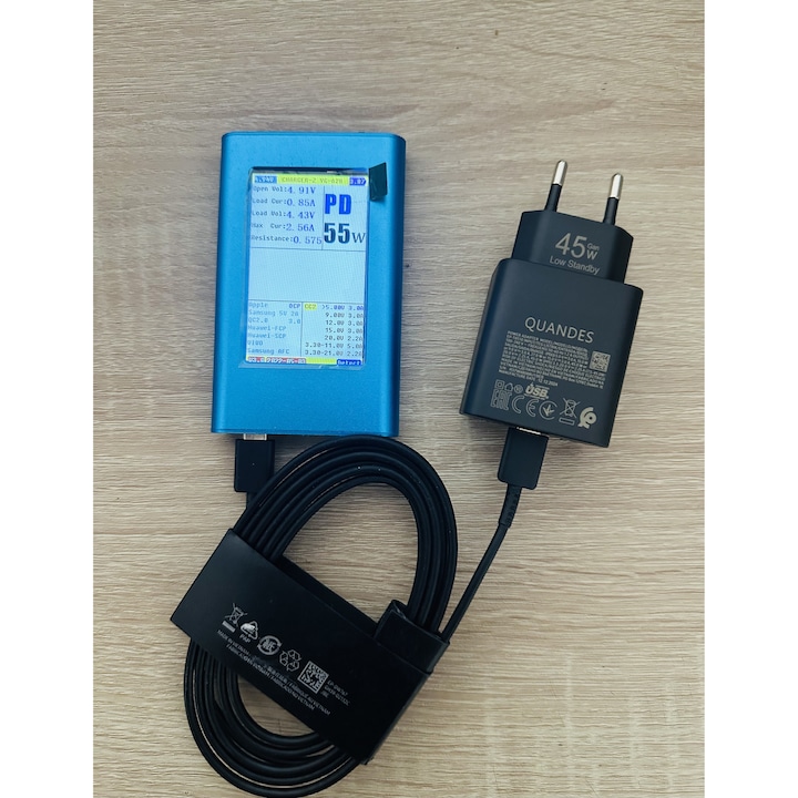 Incarcator super Fast Charge 45W PD usb C, T4510 compatibil cu Samsung S25, S24, S24, s23, 1 Cablu 1.8m USB-C - C 5A, Geanta portabila de depozitare din fetru