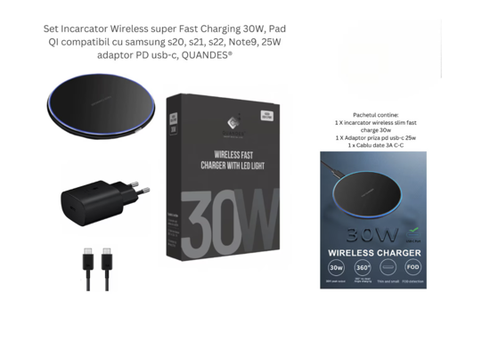 Set Incarcator Wireless super Fast Charging 30W, Pad QI compatibil cu samsung s24, s23, s22, S20, Iphone 15, 14, 25W adaptor PD usb-c
